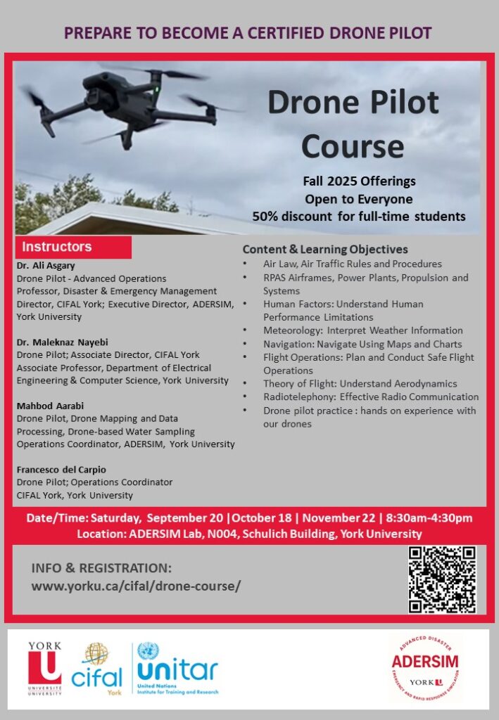 Instructors: Dr. Ali Asgary, Professor, Disaster & Emergency Management, Director CIFAL York, Executive Director ADERSIM, York University, Holds Pilot Certificate for Advanced Operations