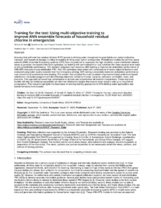 De Santi, Michael, Ali, Syed Imran, Fesselet, J., Arnold, Matthew, Taylor, D., & Khan, Usman T. (2025). Training for the test: Using multi-objective training to improve ANN ensemble forecasts of household residual chlorine in emergencies. PLOS Water, 4(4), e0000307. https://doi.org/10.1371/journal.pwat.0000307
