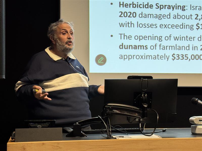 Dr. Abu Shaban also shared a story of one of his students, Yousif Abu Rabee, who started a project, “We will Cultivate It” to rehabilitate his destroyed farm in Northern Gaza. His initiative focused on producing seedlings to feed his community, despite the ongoing violence. Tragically, Yousif was killed by an Israeli airstrike while working on his land.