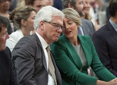 Melanie Joly, demoted to Minister of Tourism, Official Languages and La Francophonie, speaks with Jim Carr, now Minister of International Trade Diversification, at Rideau Hall. THE CANADIAN PRESS/Justin Tang