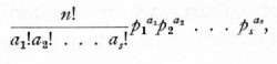 This rule is a particular case of a more general theorem dealing with cases in which not only a simple alternative is considered, but in which the event may happen in s ways with probabilities p1, p2 ..., ps; then it can be shown that the chance of a random sample of n giving a1, of the first kind, a2, of the second, ..., as of the last is