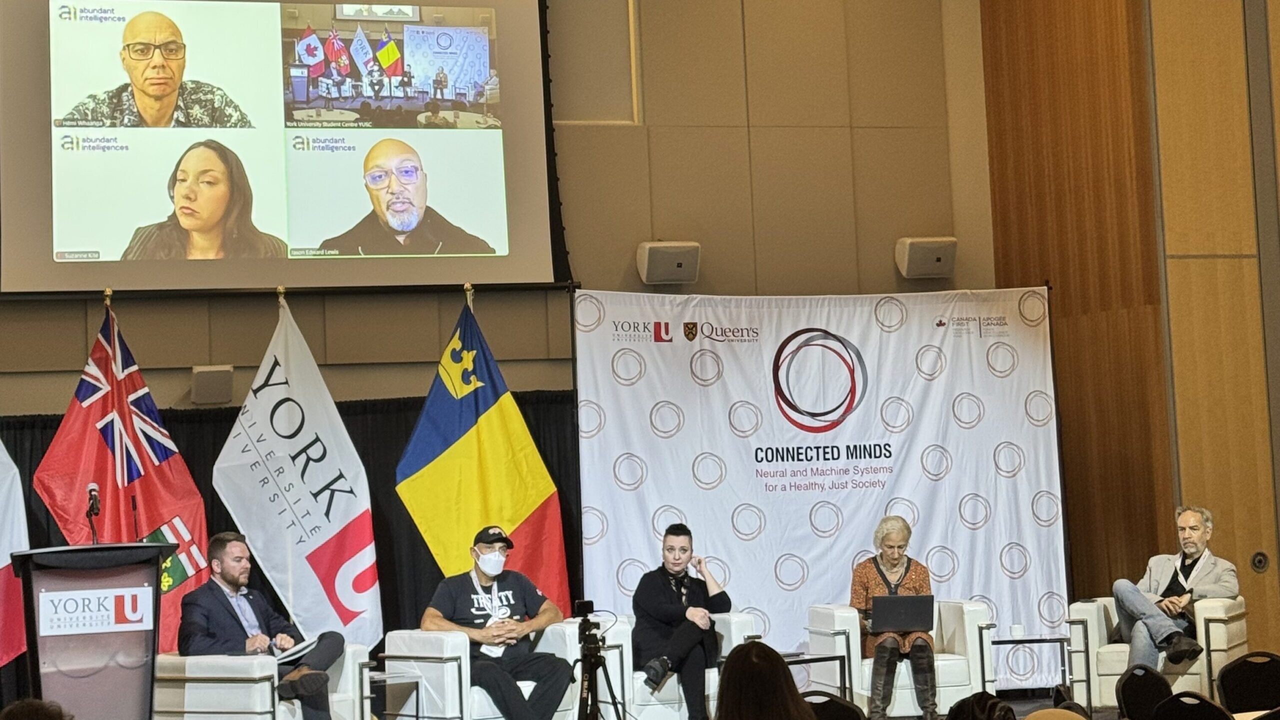 An Indigenous-led panel titled Indigenous Data Sovereignty in the Techno-Social Age, chaired by Sean Hillier, Associate Director of Connected Minds, shifted the conversation toward community, story, and responsibility. With insights from Jason Edward Lewis, Hēmi Whaanga, Suzanne Kite, and Sara Diamond of Abundant Intelligences, joined by Maya Chacaby, Archer Pechawis, and Andrew McConnell, the panel explored what it means to create technology rooted in Indigenous knowledge systems. Rather than adapting community values to fit technological frameworks, they asked what it would look like to build technology from those values in the first place. Abundant Intelligences, an Indigenous-led research program that conceptualizes, designs, develops, and deploys AI grounded in Indigenous Knowledge systems, offered a powerful illustration of this approach. Their dialogue highlighted data sovereignty as both an ethical obligation and a pathway forward, emphasizing that intelligence is not a scarce resource manufactured by machines. It exists in relationships, language, land, and community.