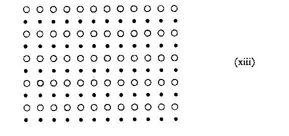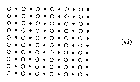 II. Proximity is not, however, the only factor involved in natural groupings. This is apparent from the following examples. We shall maintain an identical proximity throughout but vary the colour of the dots themselves:--