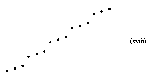 Thus far we have dealt merely with a special case of the general law. Not only similarity and dissimilarity, but more and less dissimilarity operate to determine experienced arrangement. With tones, for example, C, C#, E, F, G#, A, C, C# . . . will be heard in the grouping ab/cd . . . and C, C#, D, E, F, F#, G#, A, A#, C, C#, D. . . in the grouping abc/def . . . Or, again using achromatic colours, we might present these same relationships in the manner suggested (schematically) by (xvii) and (xviii).