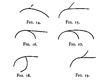 As it is now drawn, AC constitutes the continuity, B the appendage. Figs. 14-19 represent a few such variations. Thus, for example, we see that AC/B is still the dominant organization even in Fig. 15 (where C is tangent to the circle implied by A).