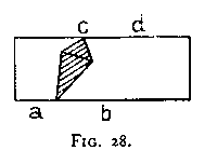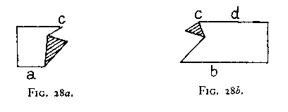Fig. 28 is most readily seen as an oblique deltoid (bc) within a rectangle (ad). Try now to see on the left side a hexagon whose lower right-hand corner is shaded, and on the right side another hexagon whose upper left-hand corner is shaded [viz. Figs. 28a and 28b].